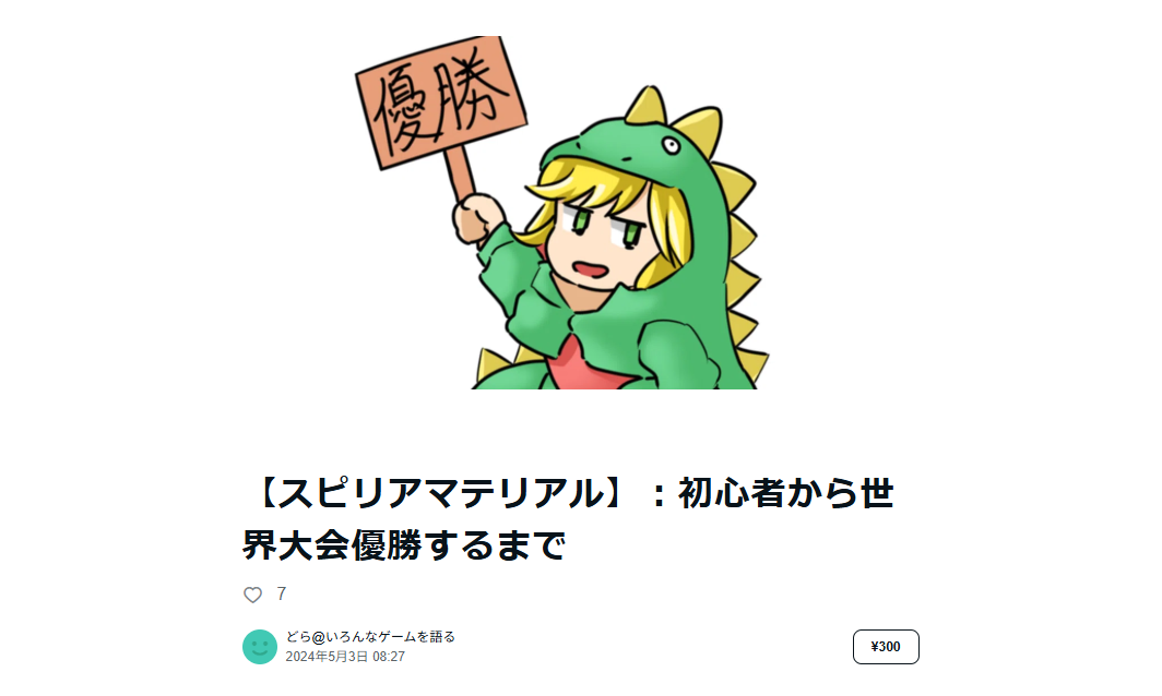 大会記事など2025.11.03【スピリアマテリアル】:初心者から世界大会優勝するまで 【スピリアマテリアル】:初心者から世界大会優勝するまで https://note.com/dra_sai_hobby/n/n2aa6e296b328
